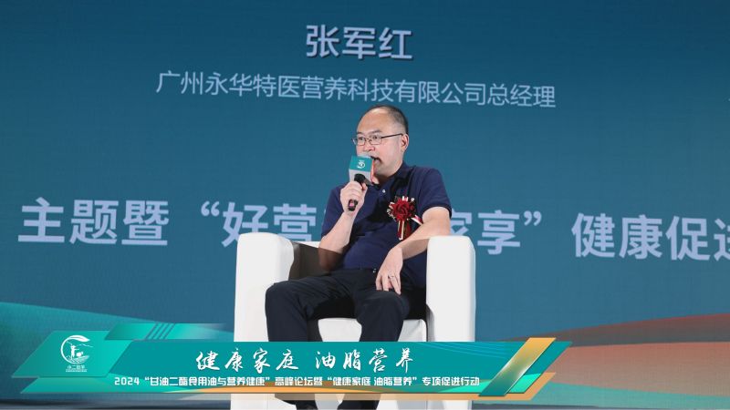 广州永华特医营养科技有限公司总经理张军红针对甘油二酯食用油市场的当前发展状况以及未来展望进行了阐述。张总指出,甘油二酯食用油作为一种新型的健康食用油脂,其市场潜力巨大,且正逐渐被越来越多的消费者所认知和接受。随着国民健康意识的提升以及甘油二酯食用油独特的健康属性的逐渐呈现,甘油二酯食用油正在引领食用油市场的新潮流。